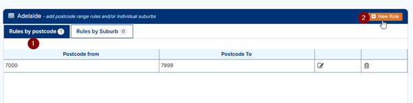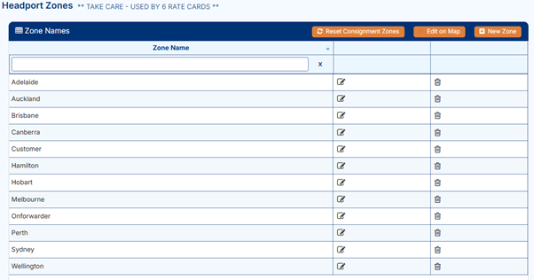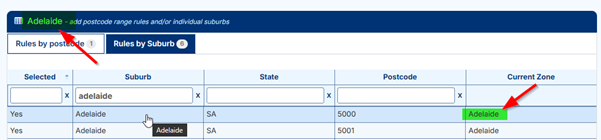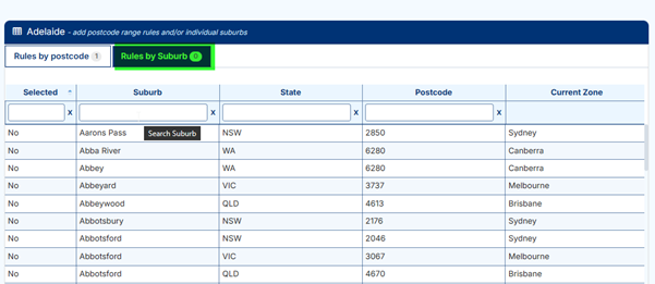 This area allows you to create Zone Lists, which group suburbs into defined zones