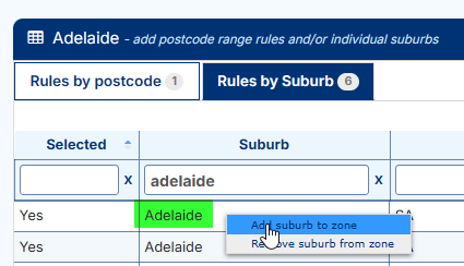 The zone will appear on the left. Next, add suburbs or postcodes: