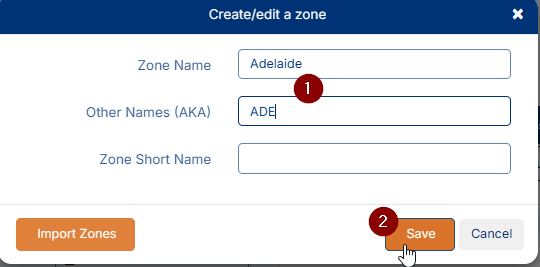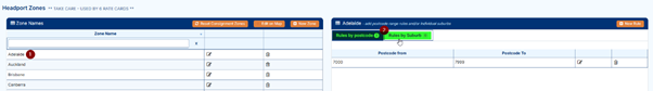 Click the Headport zone list, then select Edit Zones/Suburbs.