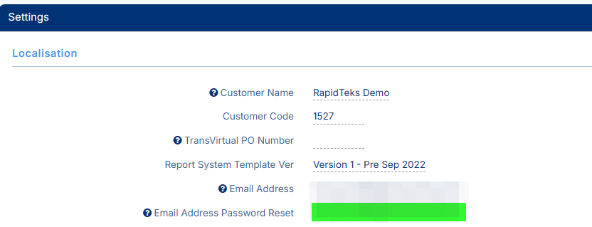 This section of the system lists a variety of global settings that can be setup to apply to all users/customers within the Transvirtual account.