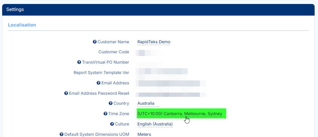 This is important as time zones affect a variety of things throughout Transvirtual - scan/status/POD timestamps, etc.