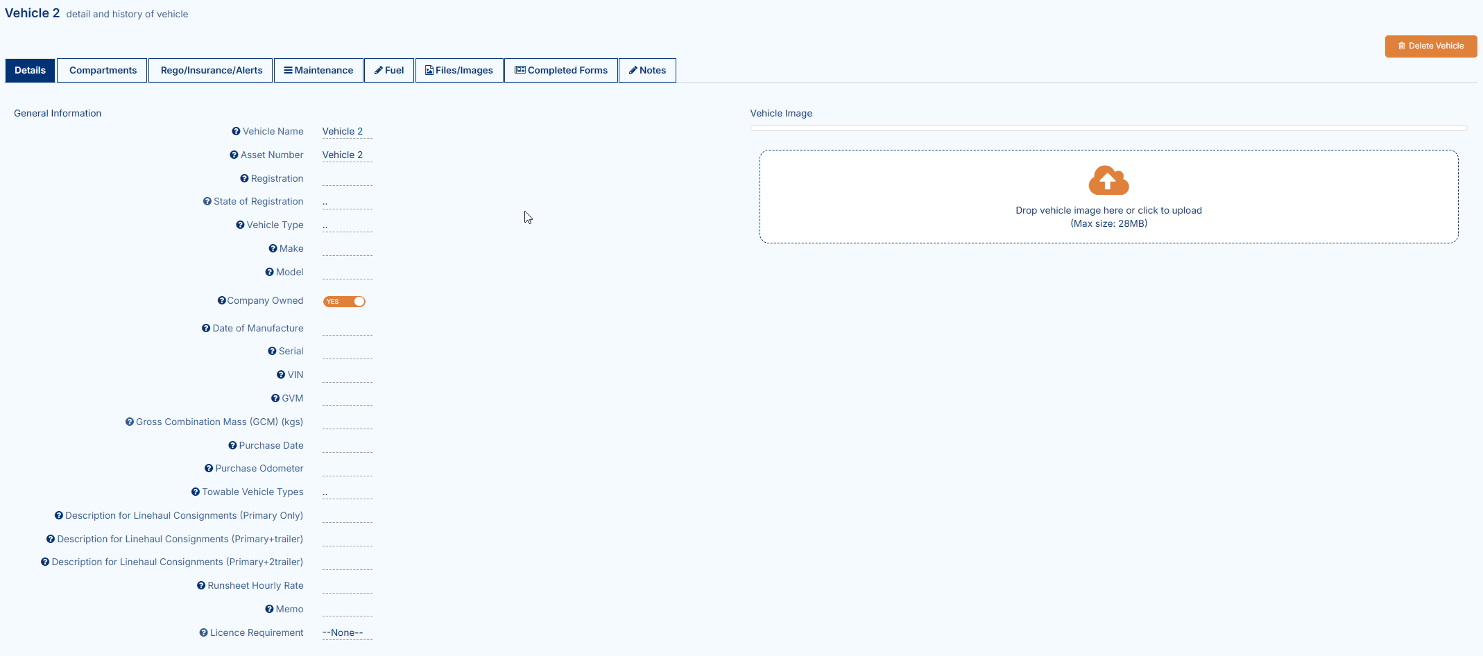 The vehicle will now appear in the grid - double click to open and edit additional details: