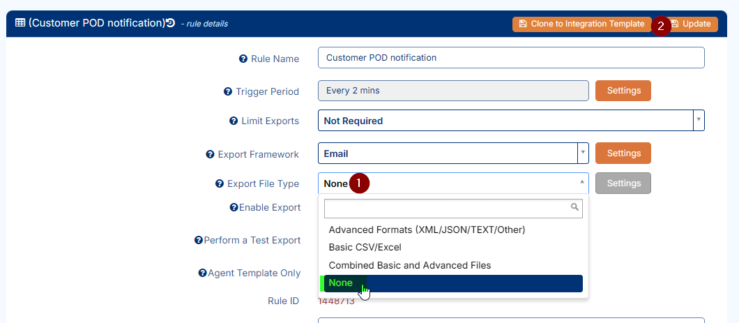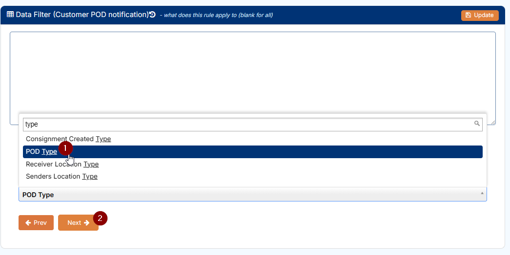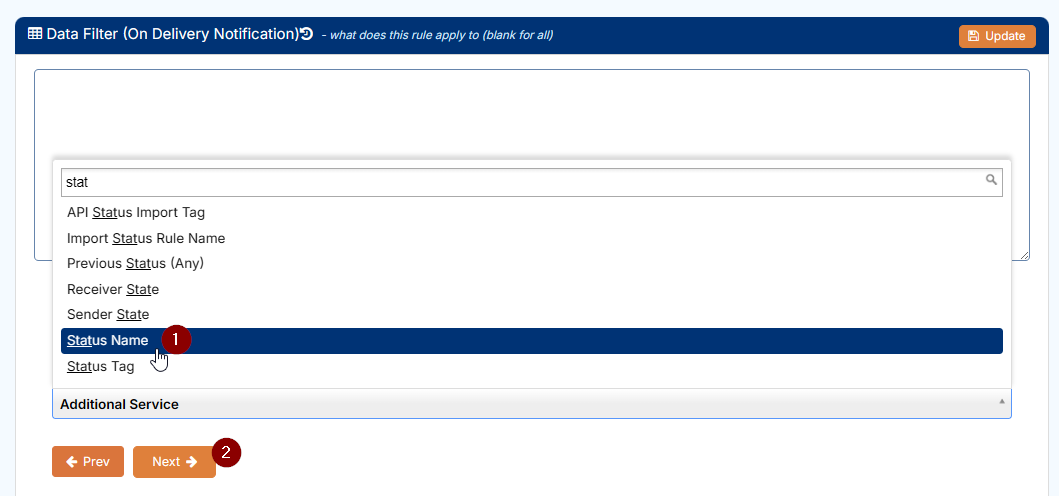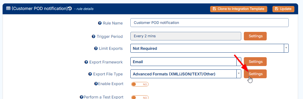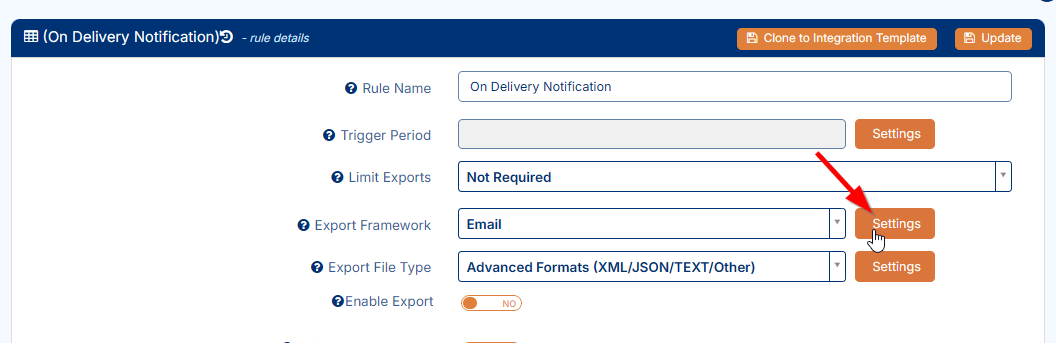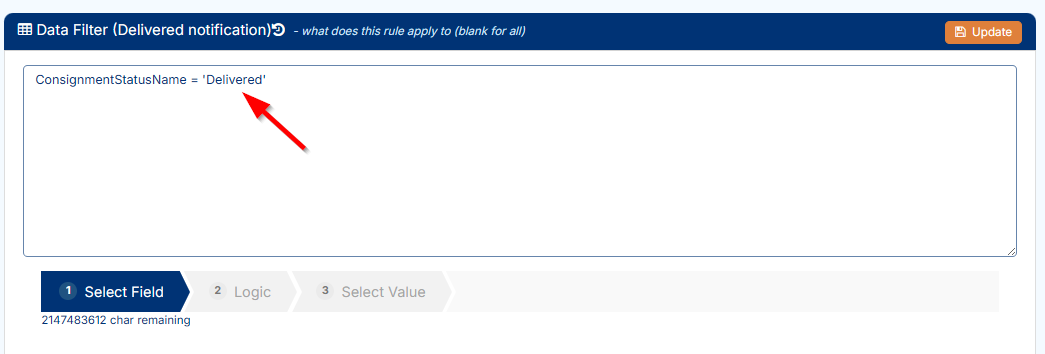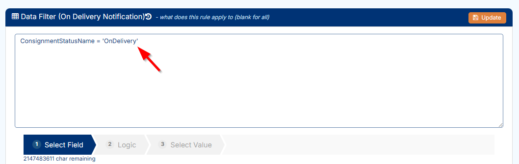 The configuration for these notifications is almost identical to the On Delivery notifications above, with only a minor change to the data filter required. A new rule must be configured.
