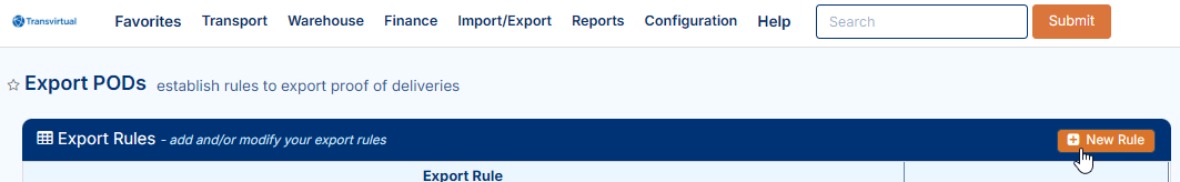This section of Transvirtual allows the configuration of Proof of Delivery (POD) exports that send notifications to customers when consignments are delivered. This provides near real-time visibility of when freight has been delivered.