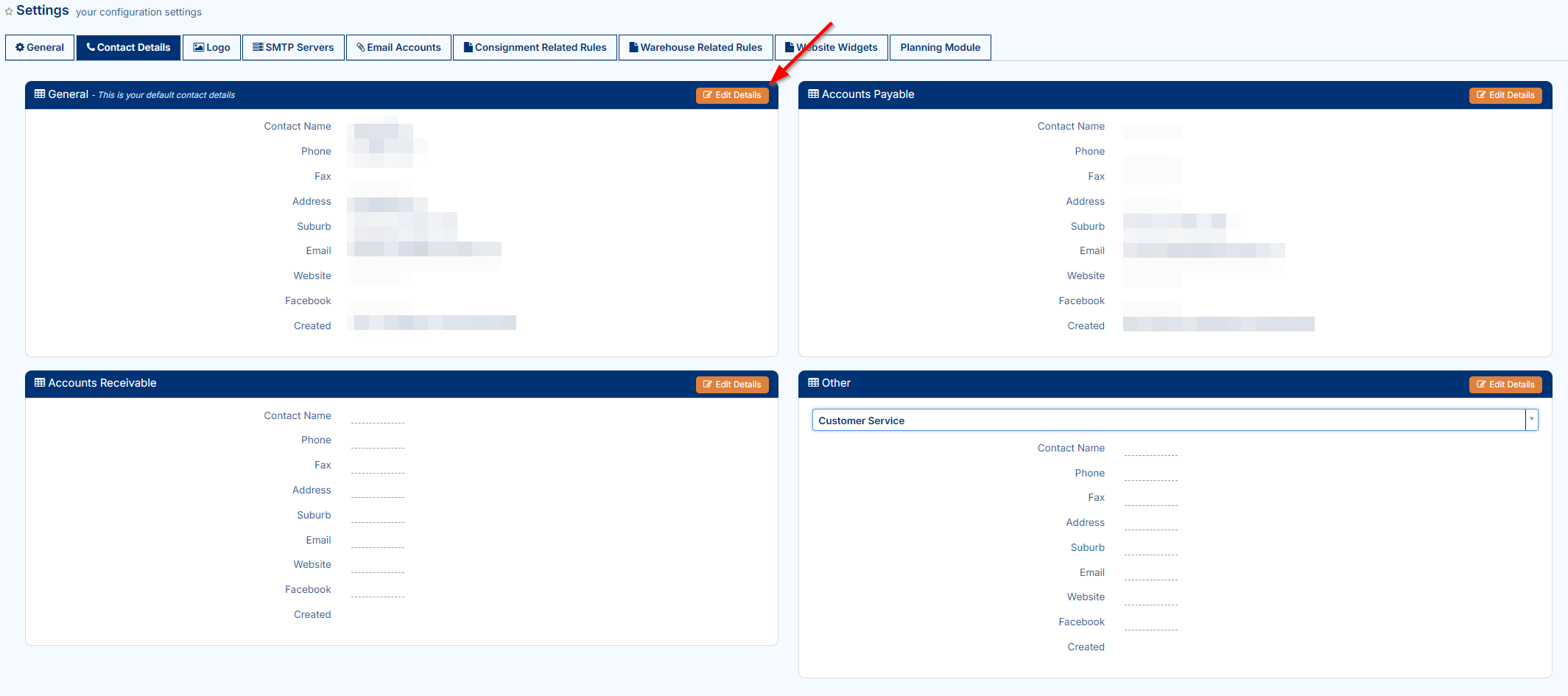 To begin, navigate to the above Page URL which is located under Configuration > General > Global Setup > Contact Details Tab: