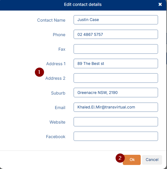This section of the system is where account contact details can be entered for use across various areas of the platform including where Transvirtual invoices and communications are sent.
