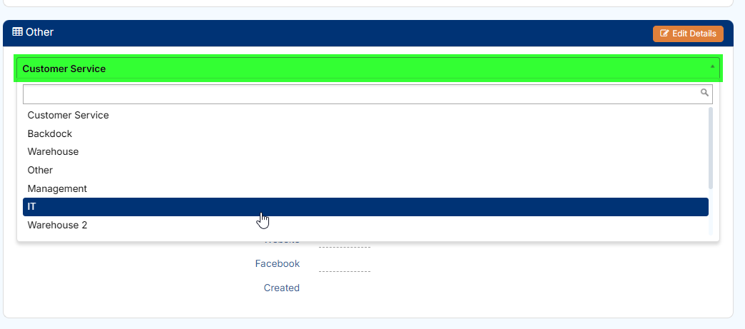 Selecting an alternate type here will allow for details for that group to be entered:
