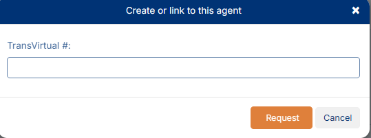 Enter the TransVirtual number for the agent and click Request; this can be obtained from the agent.