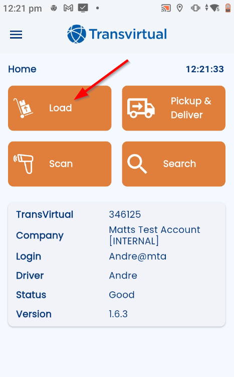 From here, scan the freight to be loaded: