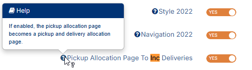 Set to YES which will cause the Pickup Allocation page to convert to an Allocations page allowing for delivery assignment also.