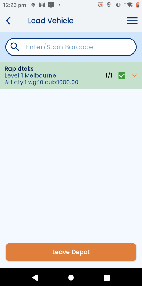 Leave Depot when ready to start the run. This action moves all consignments to the