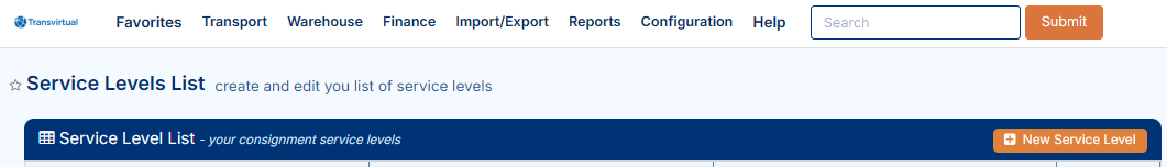 - Click New Service Level